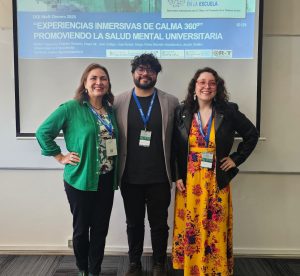 En el ámbito de la convivencia universitaria, Marlen Figueroa-Varela, Pamela Romero Lizama, Juan Zúñiga Jorquera, Hugo Sir Retamales, Dángela Asmut Sandoval (GAÚ), Diego Peña Pittet y Nicolás Sepúlveda presentaron la propuesta “Experiencias inmersivas de calma 360. Promoviendo la salud mental universitaria”, donde dieron a conocer una innovadora iniciativa para fomentar el bienestar emocional mediante tecnologías inmersivas.
