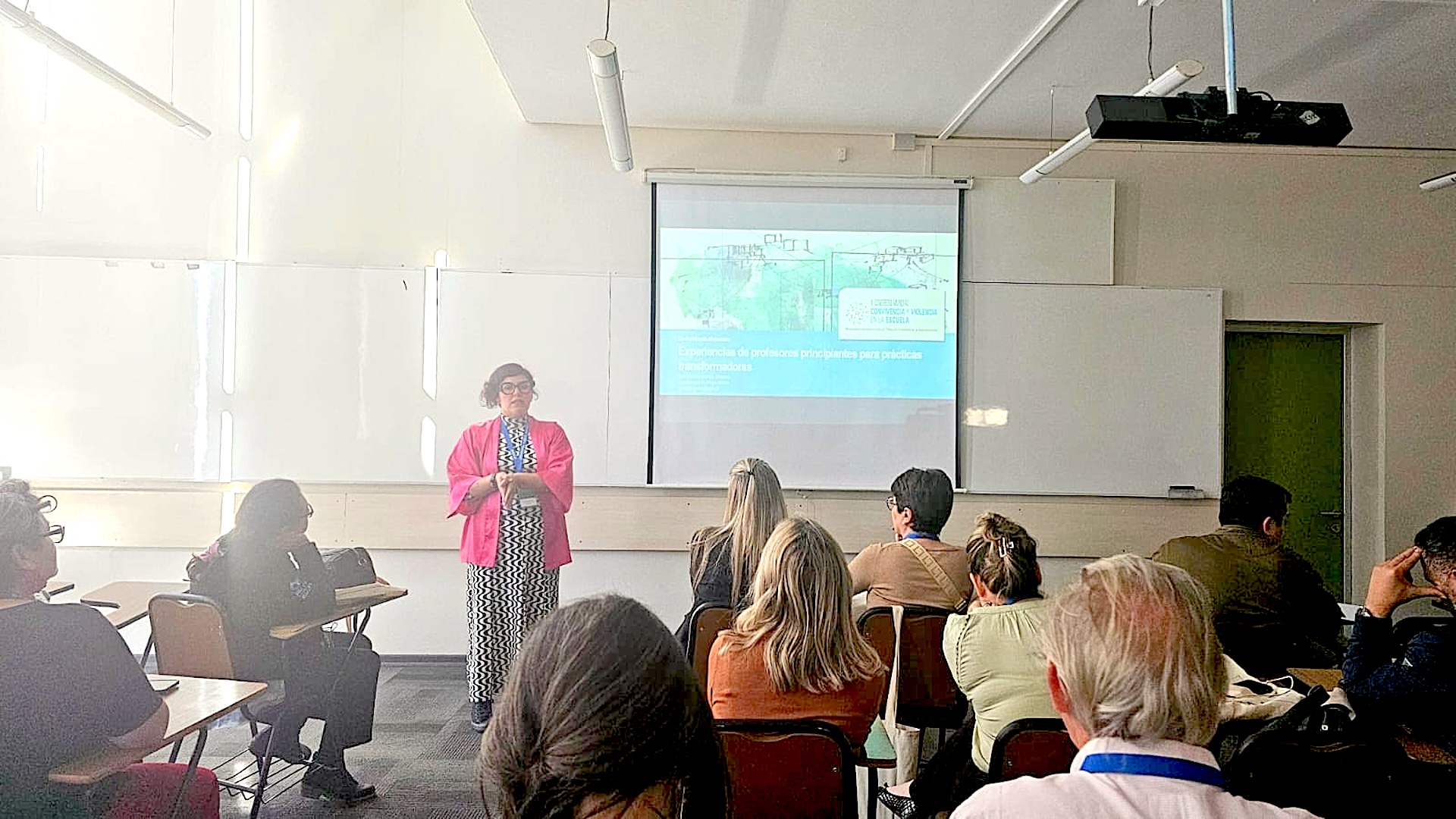 Por su parte, la académica Pamela Barría Herrera expuso la presentación “De la violencia al bienestar: experiencias de profesores principiantes para prácticas transformadoras”, en la que compartió resultados de investigación sobre los procesos de inserción docente y su vinculación con el bienestar emocional y la convivencia positiva.