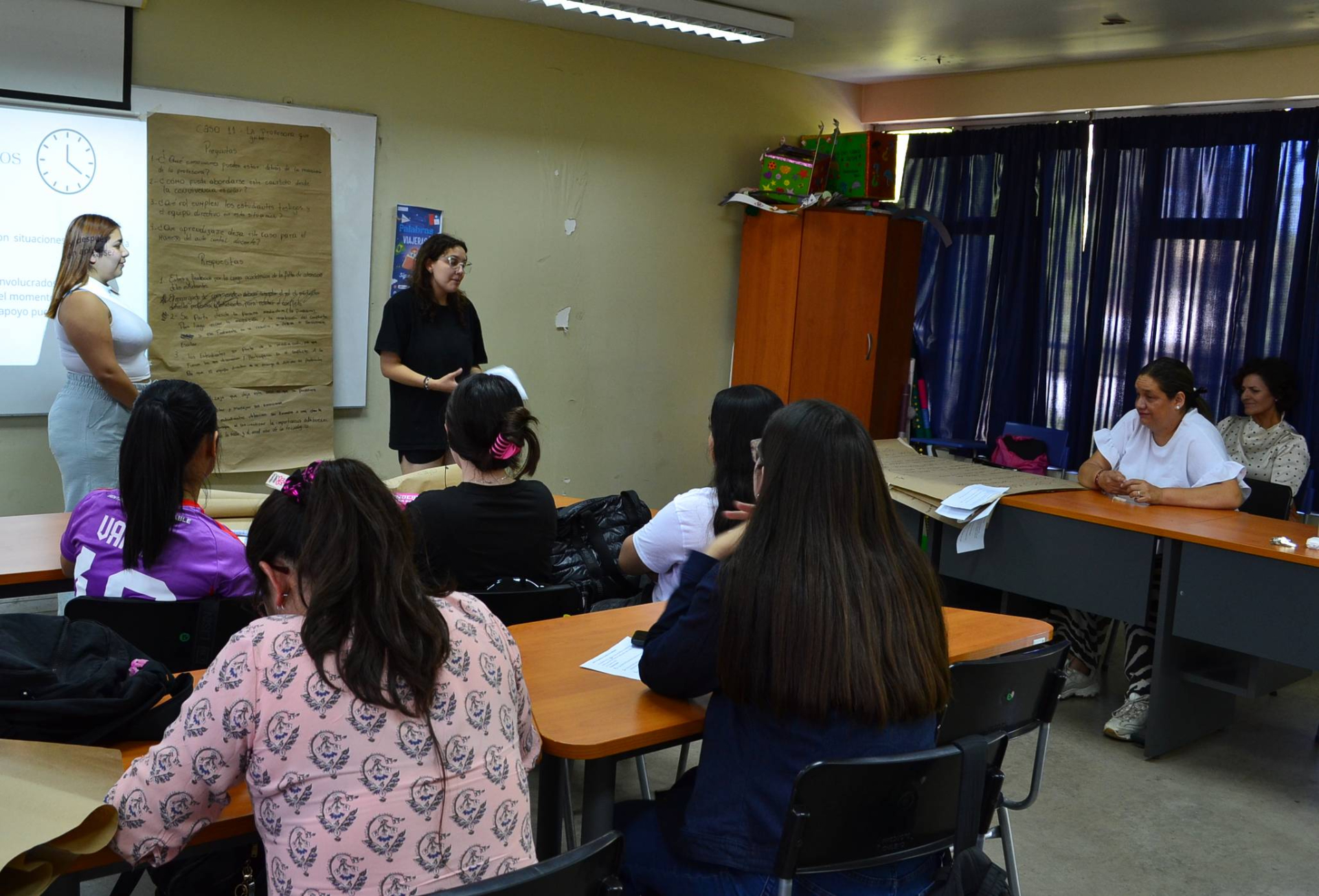 La diplomada en convivencia escolar por la UNAB generó instancias para conocer las experiencias en aula que han tenido los y las jóvenes, a partir de sus prácticas tempranas o profesionales, analizando y reflexionando en conjunto sobre casos reales de situaciones complejas de convivencia escolar, como conflictos entre compañeros de clase, difusión de grabaciones de hechos de violencia en el aula o situaciones de autolesiones de alumnos, entre otros.