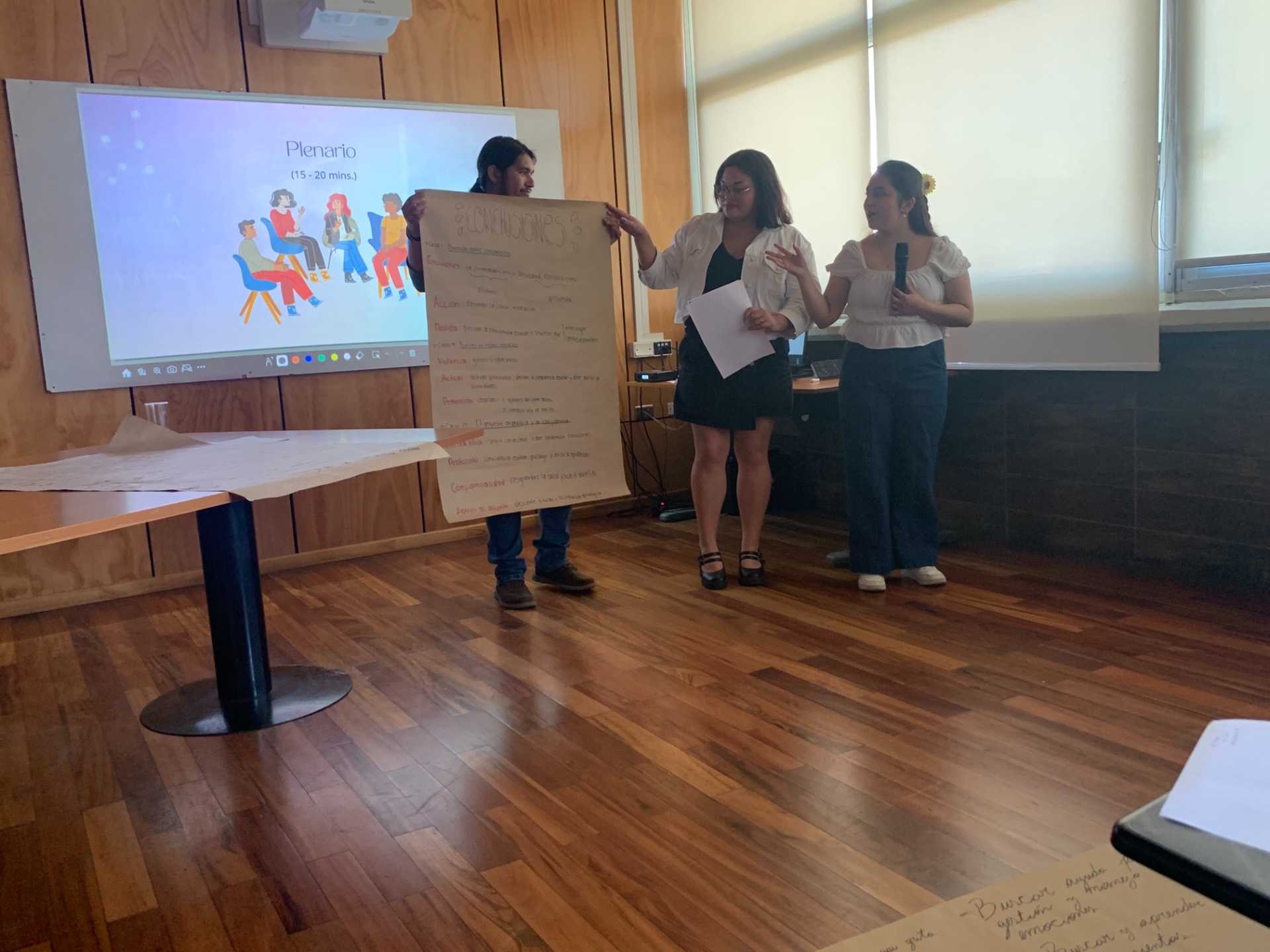A través de la conversación y el trabajo en grupos se analizaron, críticamente, diversas situaciones de convivencia escolar para reconocer las emociones, conflictos y factores que intervienen en el clima del aula. También se desarrollaron estrategias pedagógicas para favorecer la gestión emocional, la empatía y la resolución pacífica de conflictos dentro del contexto educativo.