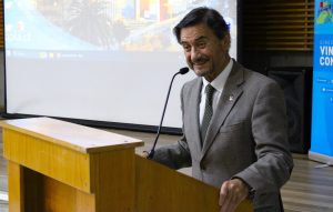 Durante la ceremonia, se desarrolló un panel de conversación con expertos, integrado por Osvaldo Bernales Rivas, presidente de la Red de Vinculación con el Medio de las Universidades del Estado de Chile, y Carol Joglar Campos, profesora asociada de la Universidad de Santiago en la Facultad de Química y Biología, espacio que fue moderado por la coordinadora de la Unidad de Vinculación Académica y Desarrollo Territorial de la DGVM, Gabriela Contreras Escudero.