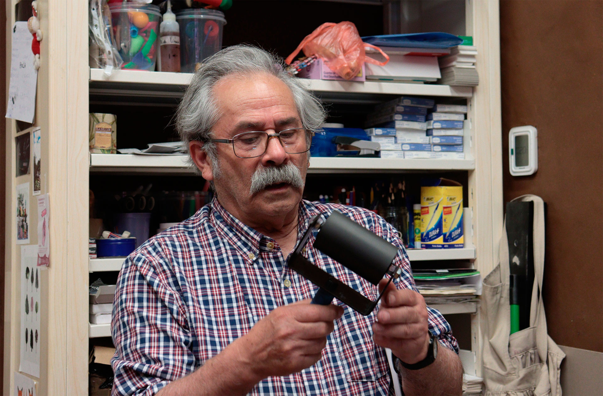 Sobre su vínculo con el grabado, comentó que esta disciplina también forma parte de su trayectoria artística: “Especialmente xilografía, que es lo más íntimo que hago en mi taller, pero además tengo una galería de arte en el Mercado Persa, es un lugar donde hablo del arte popular, del grabado de la literatura de cordel, donde cuelgo con perros de la ropa mis grabados y los vendo muy baratos”.