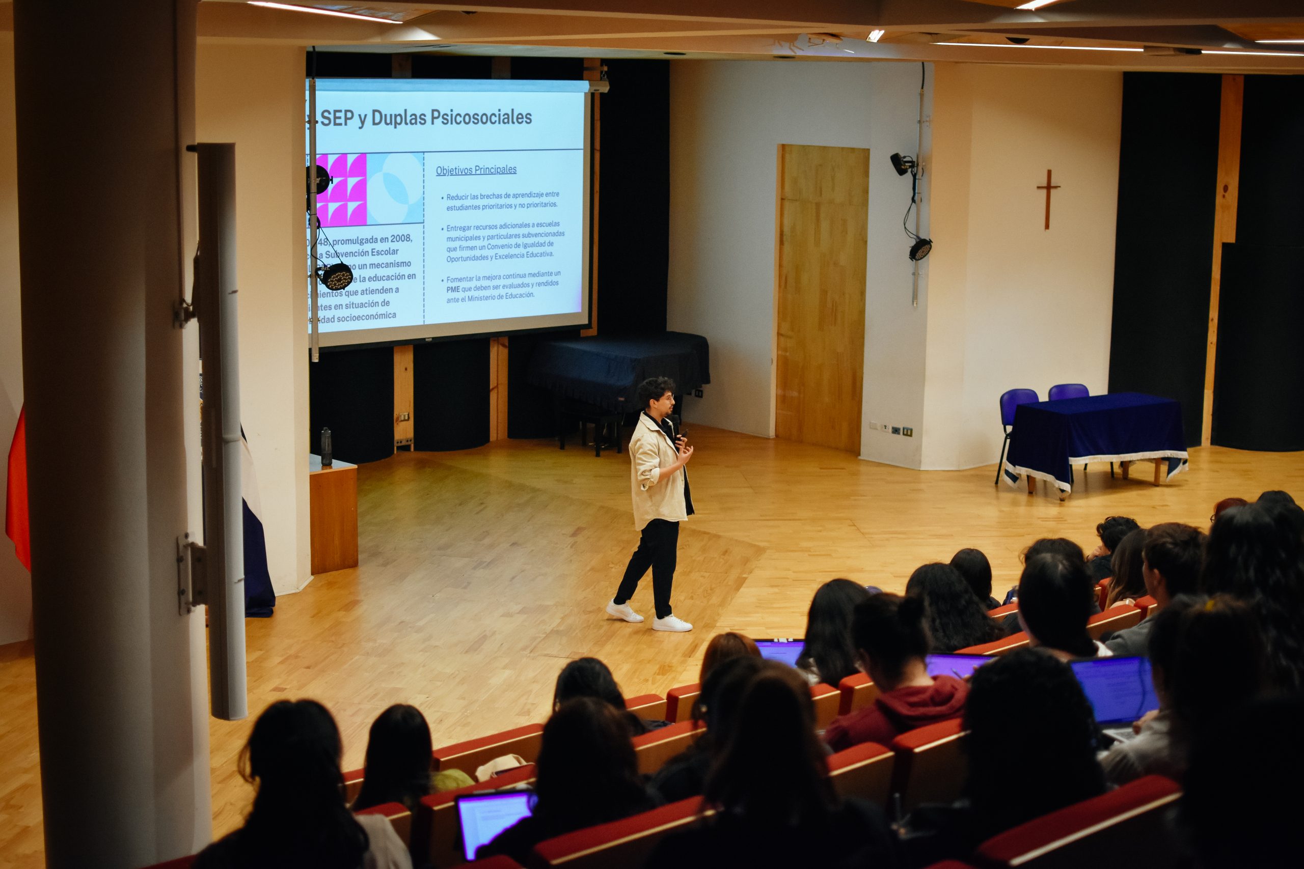 A través de la presentación titulada “Desafíos y aportes de la Psicología Educacional en Chile: Roles y experiencias significativas”, Lagos dio a conocer la labor que realiza en su establecimiento, espacio en el que brinda apoyo psicoeducativo a las y los estudiantes y sus familias, con énfasis en quienes presentan condición prioritaria o preferente en riesgo pedagógico, como también a quienes poseen dificultades sociales, afectivas y/o conductuales, con la finalidad de garantizar el desarrollo de sus trayectorias formativas, todo en concordancia con el proyecto educativo institucional, el plan de mejoramiento educativo y el currículum vigente.