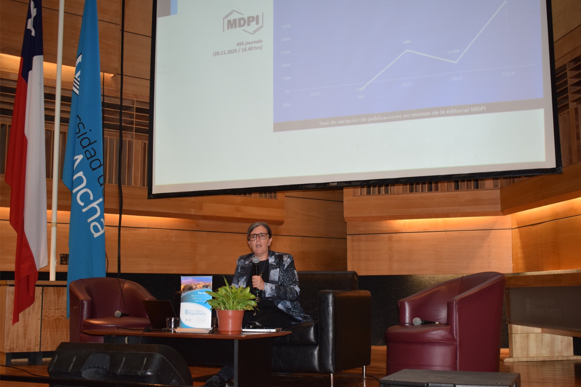 Cómo circula el conocimiento en Ciencias del Deporte en el sistema de CTCI, fue el tema abordado por la vicerrectora de Investigación, Postgrado e Innovación de la Universidad de Playa Ancha, Dra. Carolina Santelices Werchez.