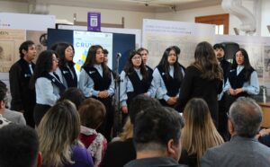ofrecer la presentación artística que cerró la ceremonia de inauguración en el segundo piso de la Biblioteca Severín, a cargo del Coro de Cámara de la UPLA, elenco que está bajo el alero de la Dirección General de Vinculación con el Medio (DGVM).