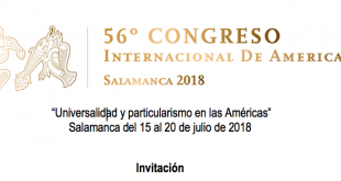 Se trata del 56 Congreso Internacional de Americanistas, que se celebrará en Salamanca, España, entre el 15 y 20 de Julio de 2018.