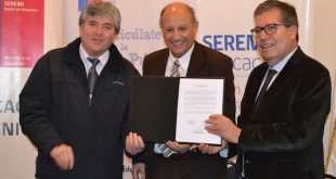 Rector Sanhueza, intendente Aldoney y seremi de Educación firman acuerdo para construir el establecimiento estatal, que podría recibir sus primeros alumnos en 2019.