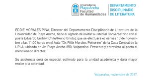 Más información10 de noviembre: Conversatorio con el poeta Eduardo Embry
