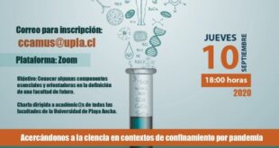 Actividad organizada por la Facultad de Ciencias Naturales y Exactas de la Universidad de Playa Ancha, se realizará el jueves 10 de septiembre, por la plataforma Zoom.