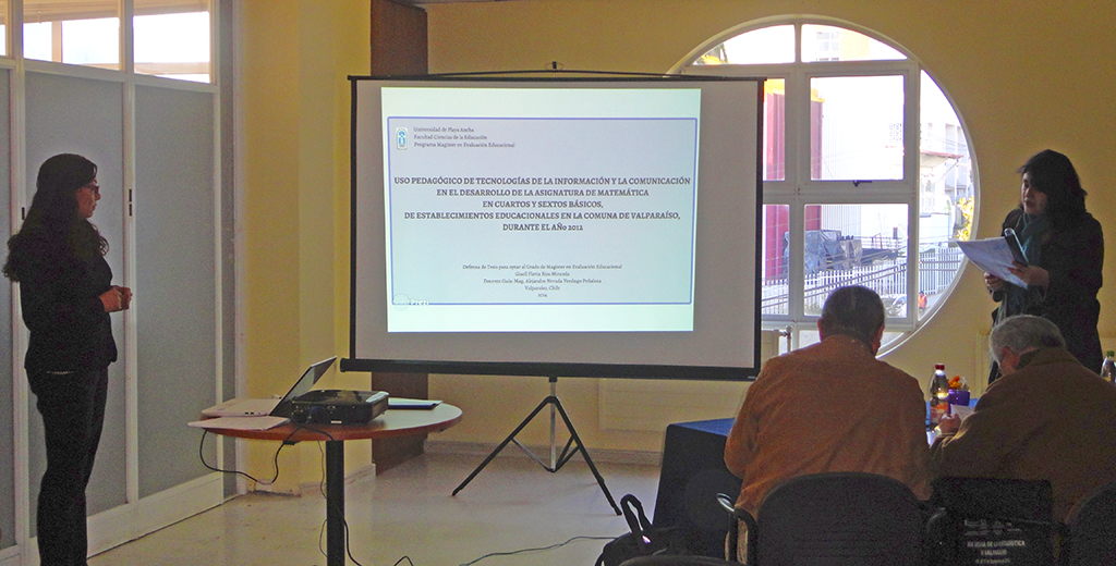 La estudiante el programa Magíster en Evaluación Educacional Gisell Ríos Miranda (promoción 2010) llevará a efecto la defensa de su tesis titulada «Uso pedagógico de tecnologías de la información y la comunicación en el desarrollo de la asignatura de matemática, en cuartos y sextos básicos, de establecimientos educacionales en la comuna de Valparaíso, durante el año 2012».